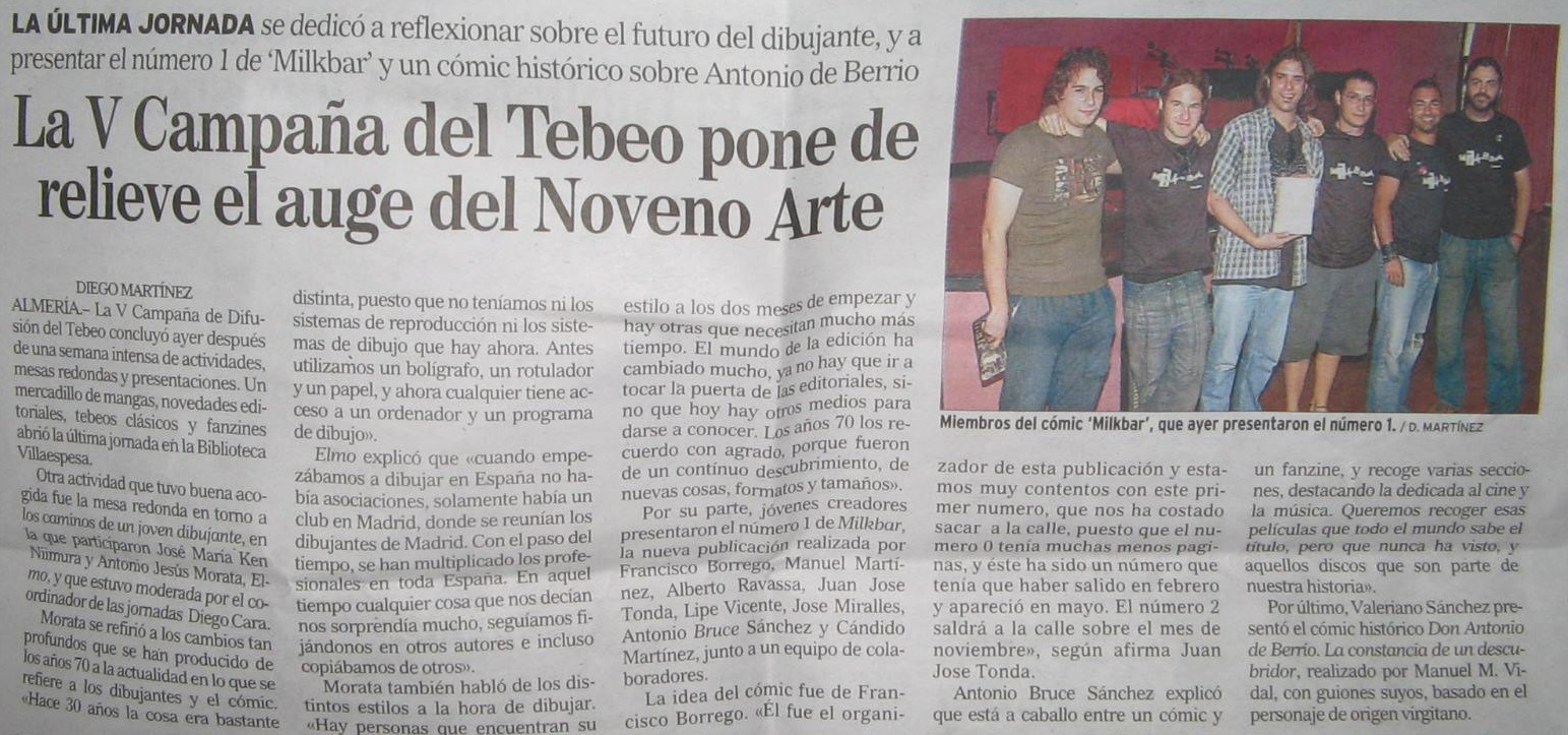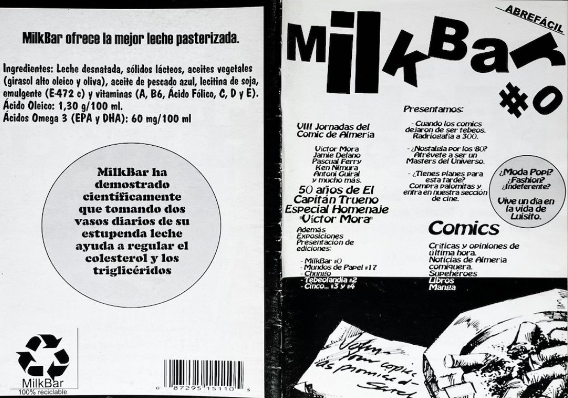 El próximo mes de noviembre se cumplen veinte años del comienzo de esta extraña e irregular aventura llamada Milkbar Fanzine. Veinte años de idas y venidas; de triunfos y fracasos; de – parafraseando a nuestro cimmerio favorito (y permítanme ponerme estupendo) – inmensos gozos y terribles melancolías. Con este breve texto no quisiera darle la matraca a usted, sufrido lector, sino tan solo hacer un pequeño homenaje a esa maravillosa gente que en algún momento ha formado parte de este proyecto, con sus artículos, sus comentarios, sus dibujos o su apoyo. Artículos que pueden gustar más o menos, pero le aseguro, esmerado lector, que todos han sido escritos con sudor, alcohol, pasión y honestidad, mucha honestidad. ¡Gracias indomables escribas y rapsodas de Milkbar Fanzine! Gracias por hacerlo posible. Esta será siempre vuestra casa. O vuestro bar, pero la birra tráiganla ustedes. Por mi parte, me limitaré a comentar brevemente la trayectoria de la revista y a robar citas de artículos ajenos y propios publicados en la edición impresa (lo que viene siendo rellenar texto siendo un vago irredento, en definitiva).