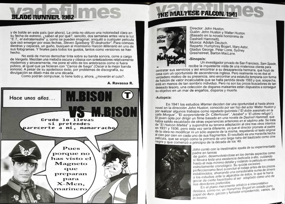 Como pueden comprobar, la revista era un cajón desastre donde todo tenía cabida: cine, collages, cómic, devore, filosofía, literatura, memes antes de que nadie supiera de ellos, moda, música, videojuegos. Siempre abalado por los impresentables de nuestros editores.