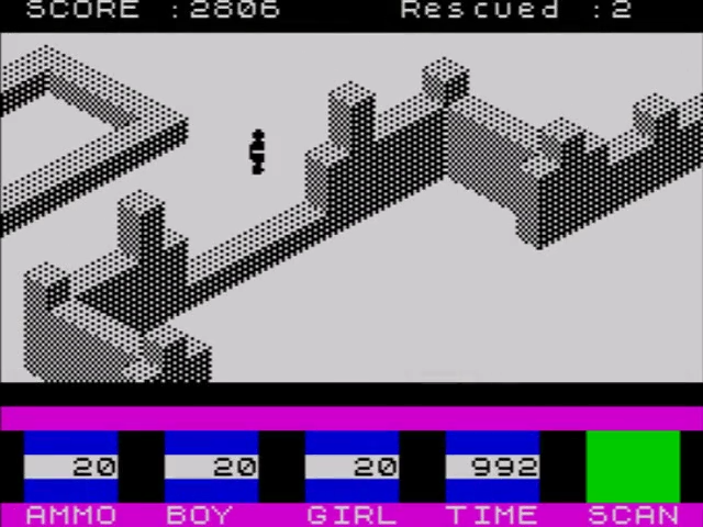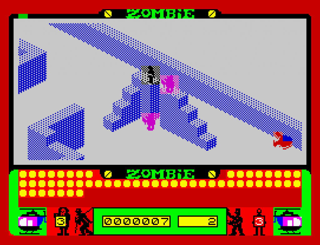 • El método para acabar con los zombies era muy gracioso y reutilizaba la mecánica de rescate de Ant Attack. En este caso, hacías que el zombie te persiguiese y lo hacías caer desde lo alto de un edificio.