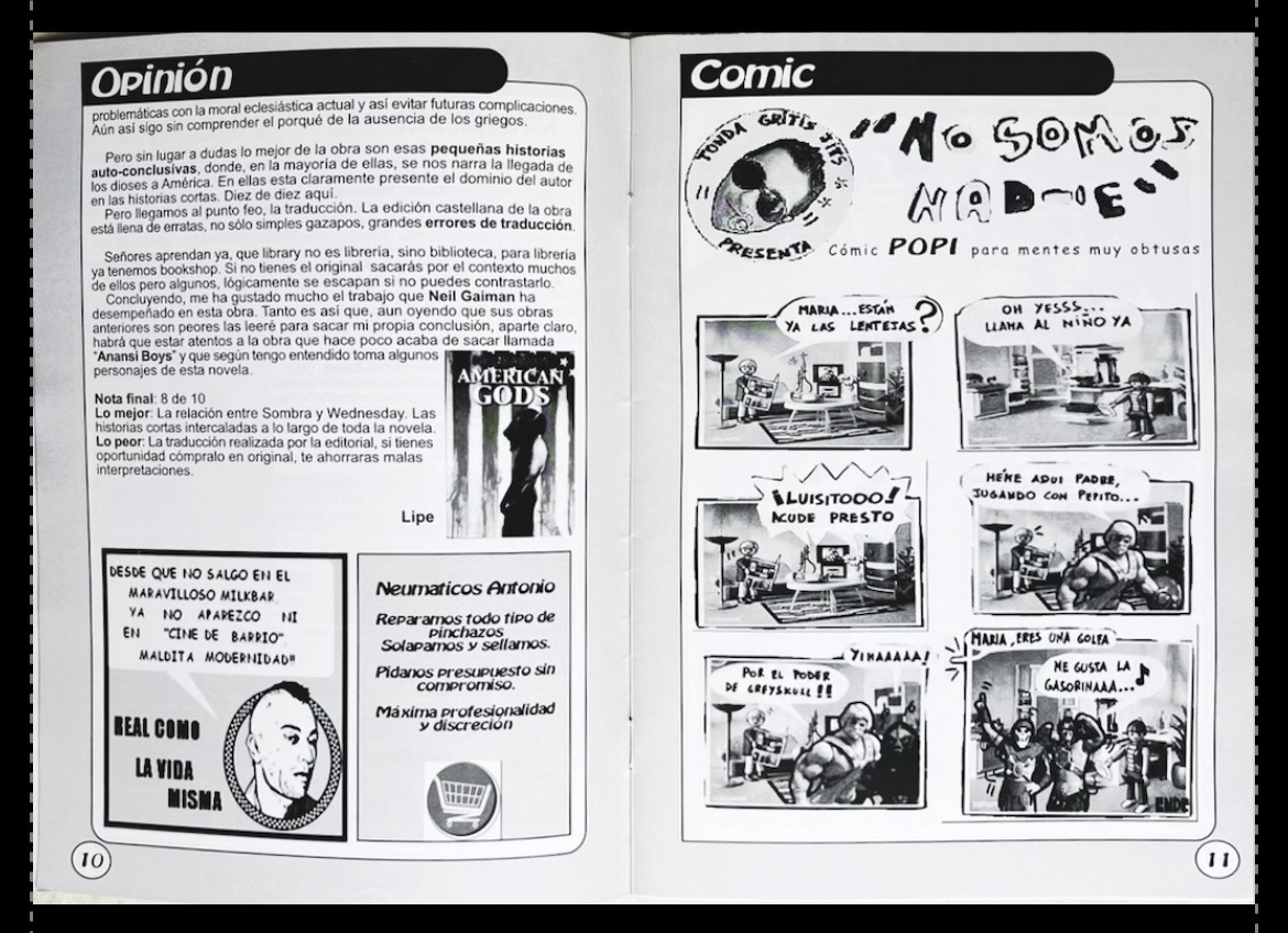 Páginas interiores del número 0 de Milkbar Fanzine. He´-man siempre presente.